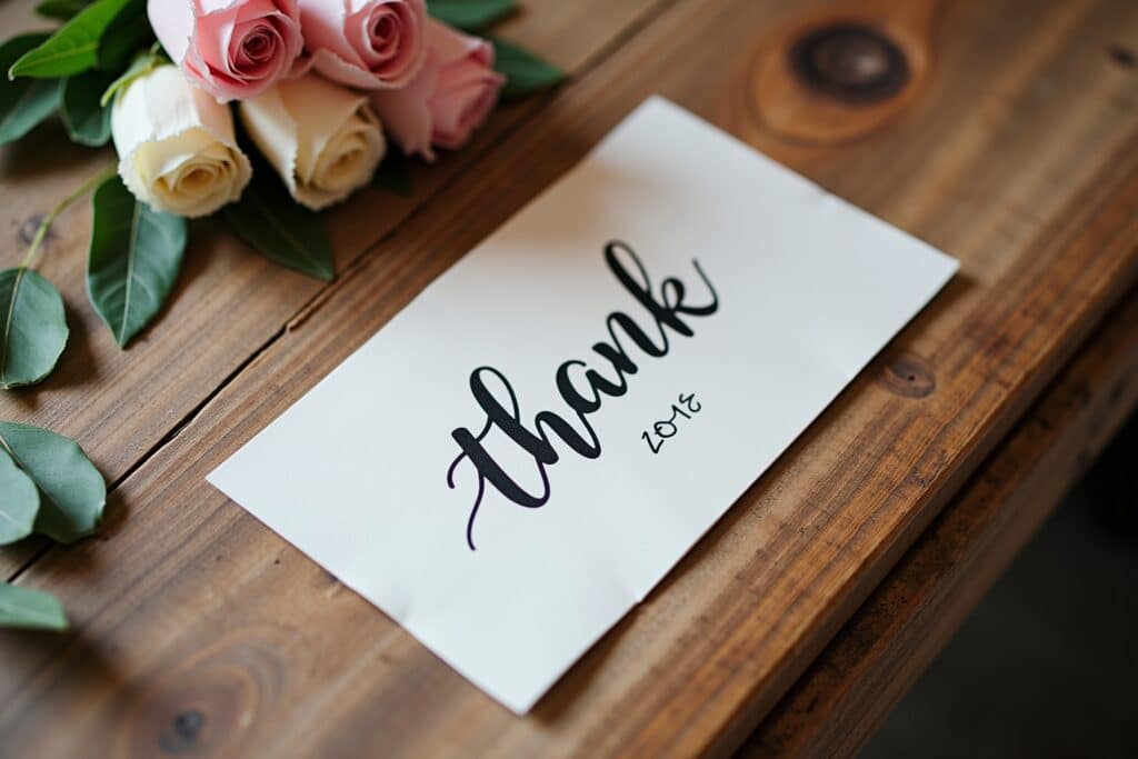 Wenn du dich für individuelle, handgeschriebene Danksagungen entscheidest, plane ausreichend Zeit ein. Es ist besser, die Karten etwas später, aber dafür mit Liebe und Sorgfalt zu versenden, als sie in Eile und lieblos zu verfassen. Deine Gäste werden die Mühe zu schätzen wissen.