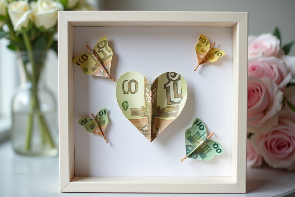 | Einfache, aber wirkungsvolle Designs | Schnell umzusetzen, aber dennoch ansprechend und persönlich (gefaltete Scheine in Gläsern). | Sehr leicht | Ideal für spontane Schenker oder als Ergänzung zu anderen Geschenken. |