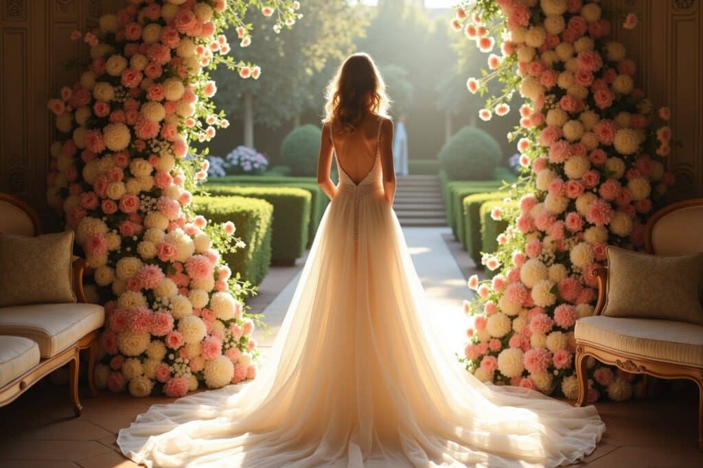Florale Elemente in Brautkleidern sind weit mehr als nur ein einfacher Aufdruck. Sie können sich in vielfältiger Form in deinem Hochzeitsensemble widerspiegeln, von subtilen Stickereien über dreidimensionale Applikationen bis hin zu fließenden Stoffen mit Blütenmustern. Die Wahl des richtigen floralen Designs hängt stark von deinem persönlichen Stil und dem Gesamtthema deiner Hochzeit ab.